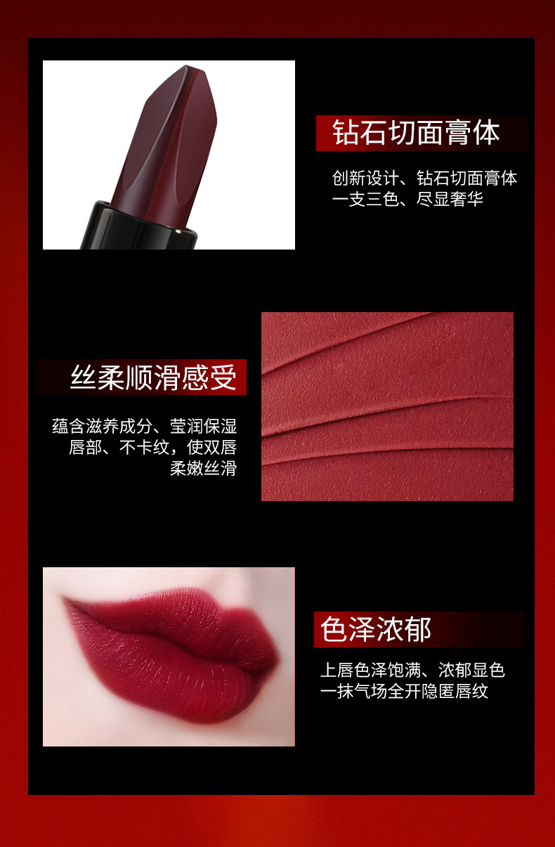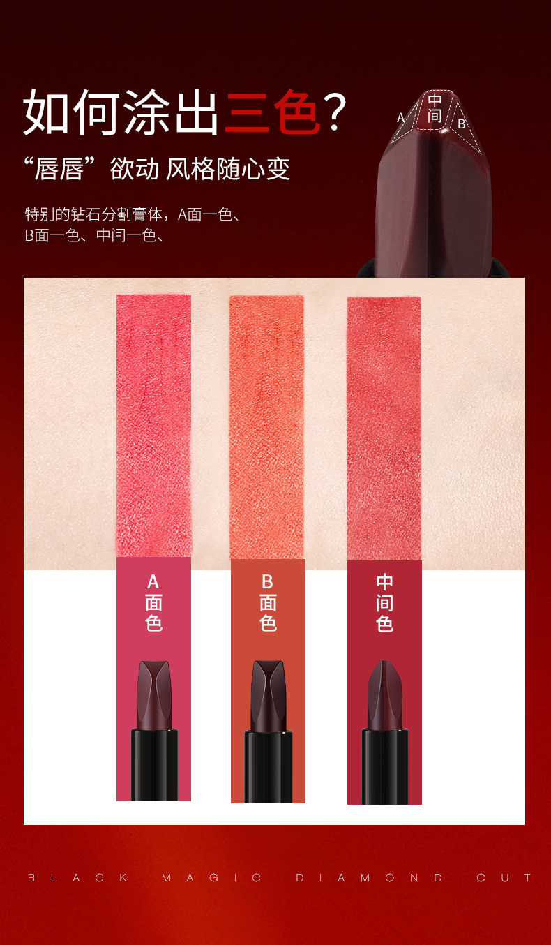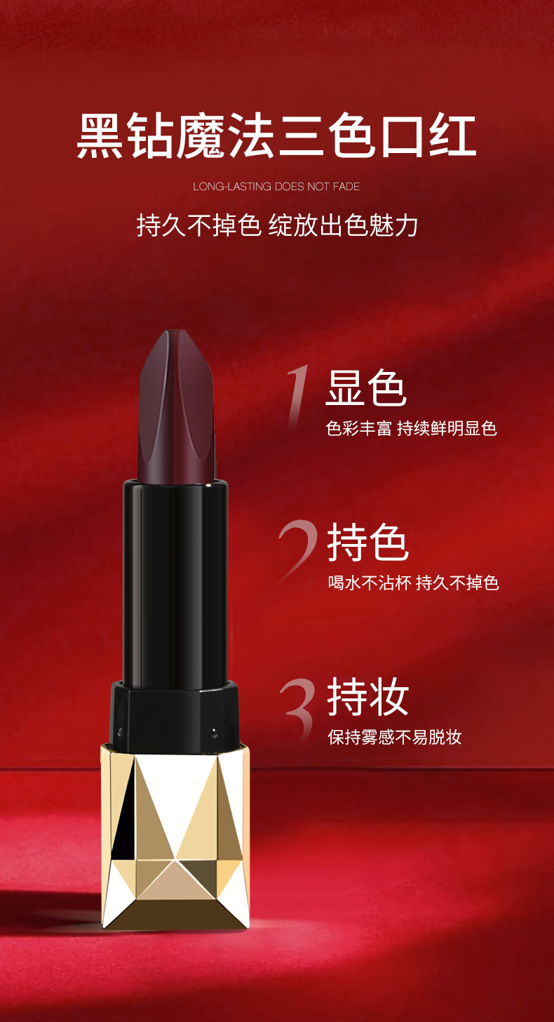 - Color: Black diamond, diamond tri-color lipstick