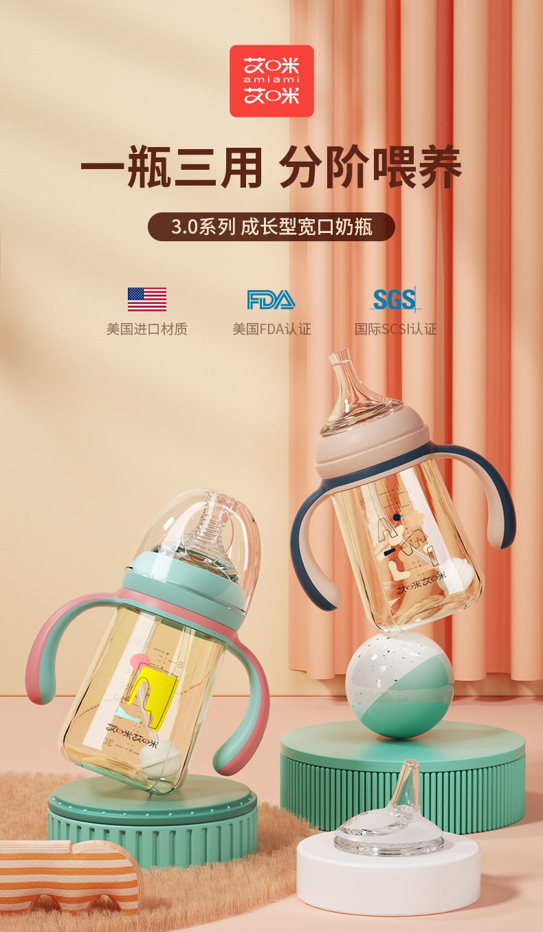 Aimi Aimi newborn baby tritan feeding bottle wide caliber anti-flatulence three-purpose imitation breast milk anti-fall feeding bottle