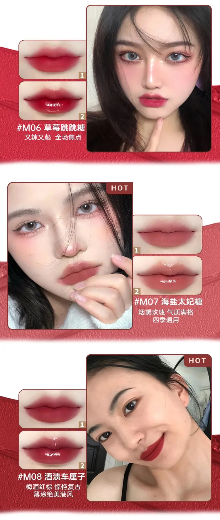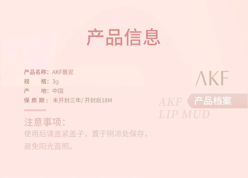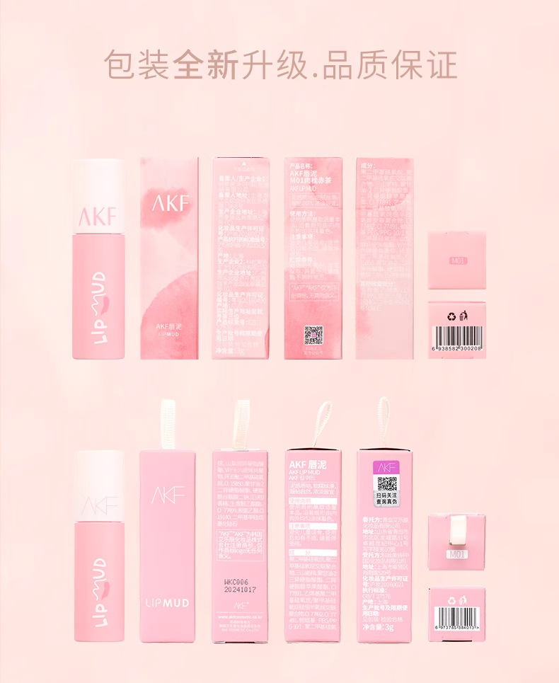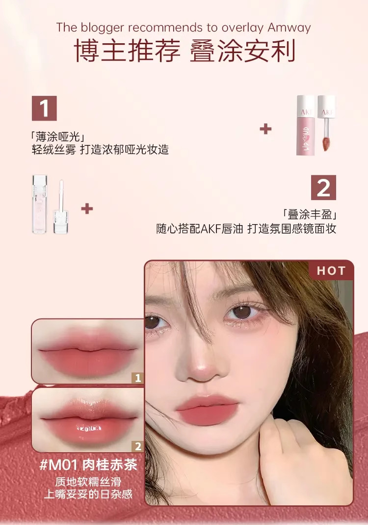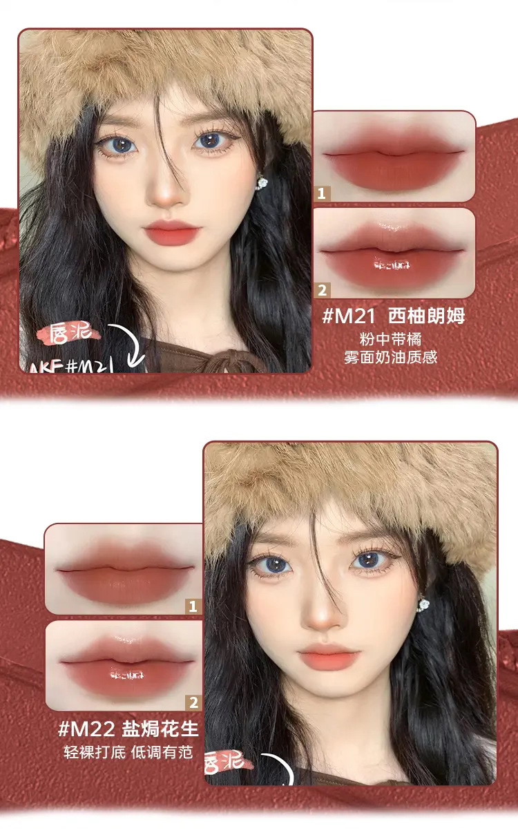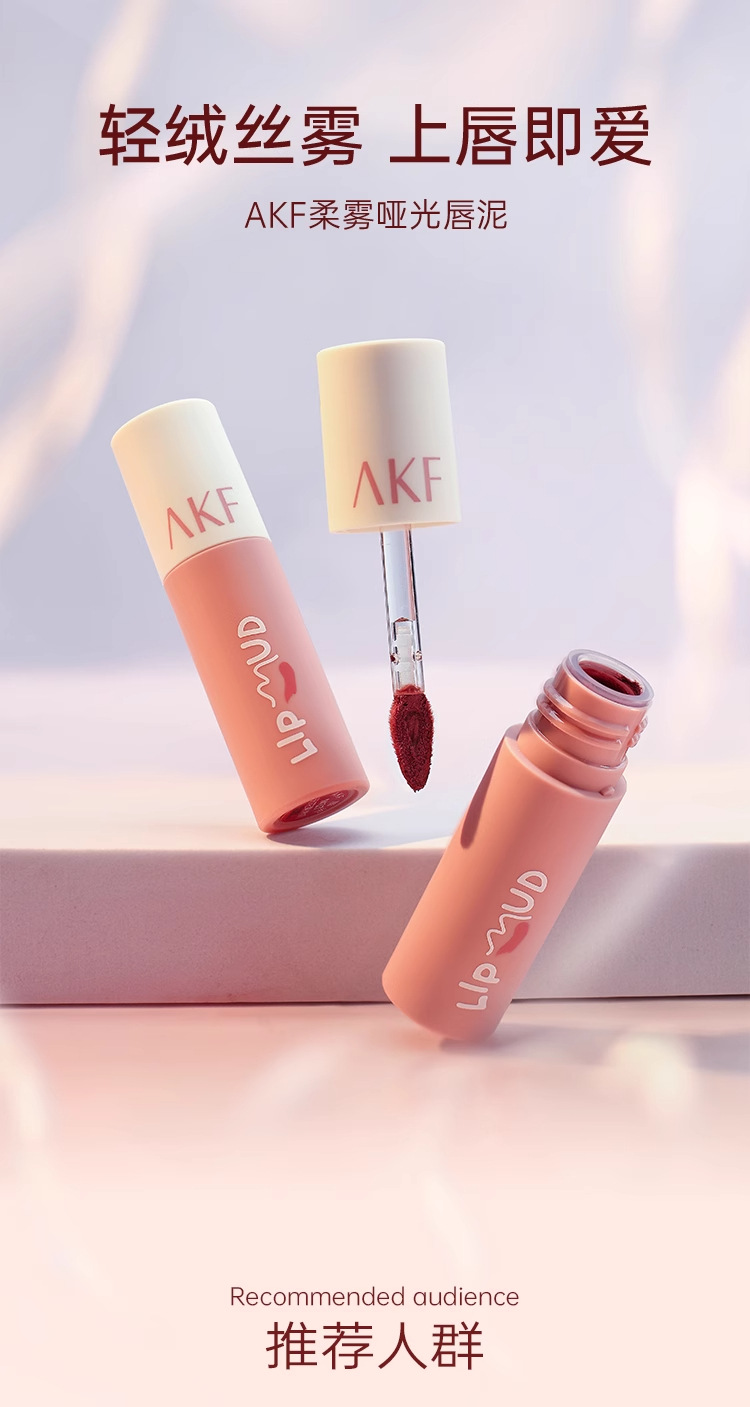 Akf Lip Mud Lip Glaze Whitening Lipstick Affordable Student Autumn and Winter Niche Brand Lipstick Lip Gloss Mist Lip Makeup Multi-Color