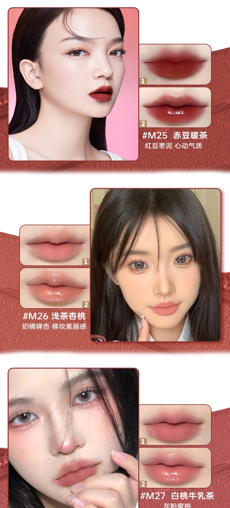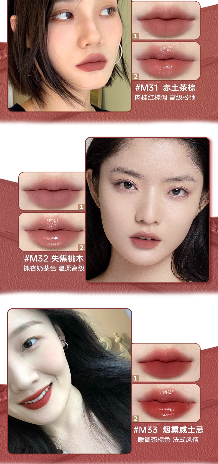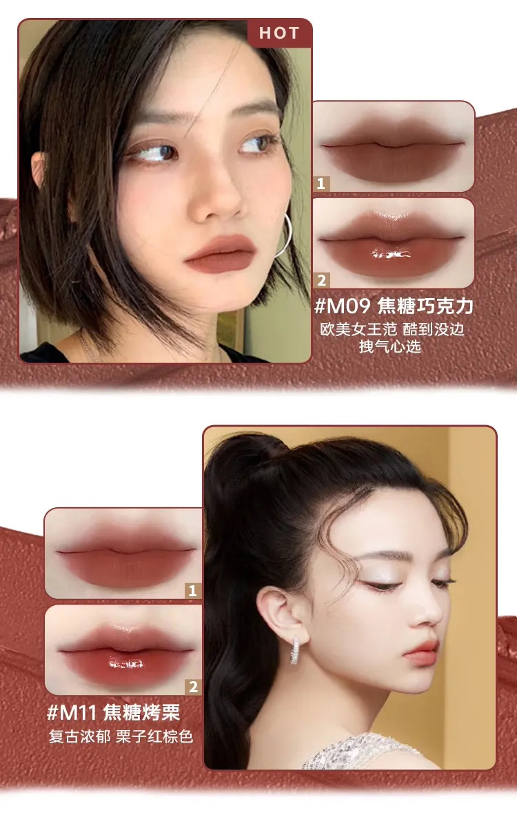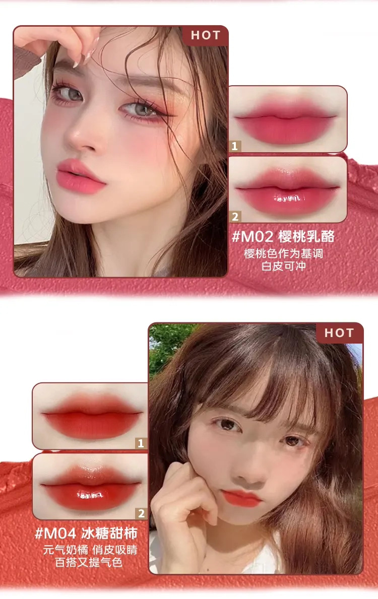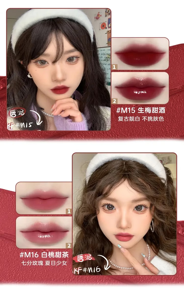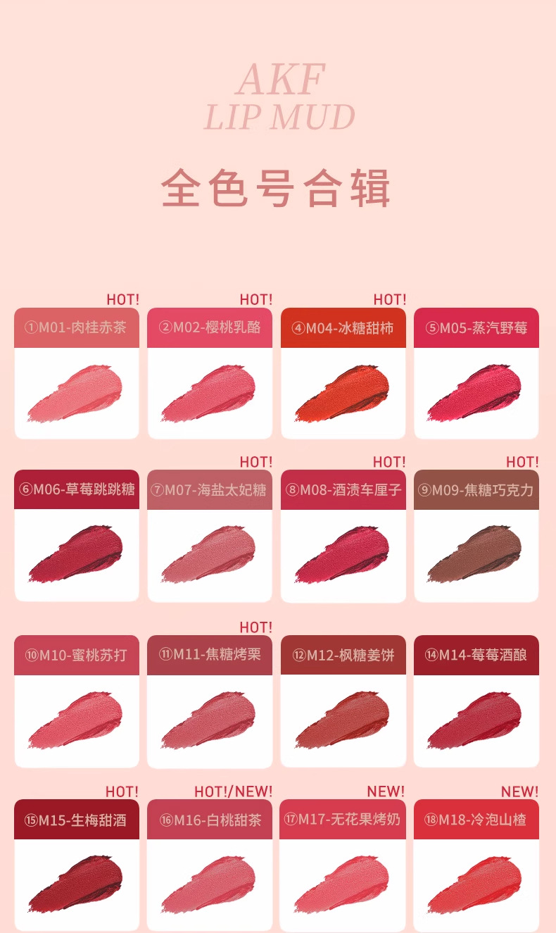 Akf Lip Mud Lip Glaze Whitening Lipstick Affordable Student Autumn and Winter Niche Brand Lipstick Lip Gloss Mist Lip Makeup Multi-Color