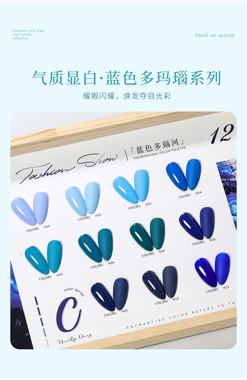 Blue 2025 New Nail Glue Klein Blue Haze dark blue Green Phototherapy Nail Glue 12 Color Small Set