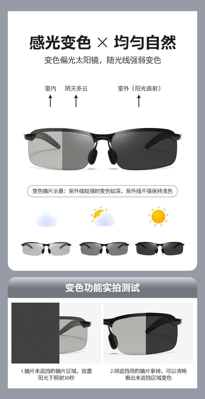 Intelligent Photochromic Polarized Sunglasses Men's Driving Sunglasses Men's Cycling Day and Night Anti-uv Sun Glasses