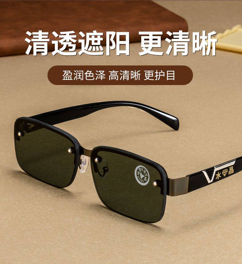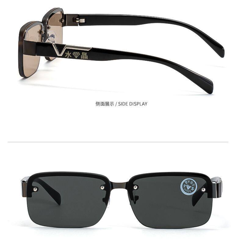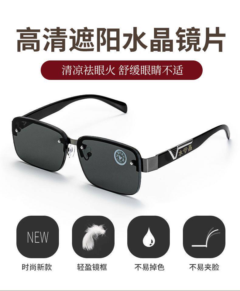 Men's Frameless Perforated Donghai Crystal Stone Glasses Outdoor Sunshade Mirror Flat Mirror Square Sunglasses Outdoor Sports