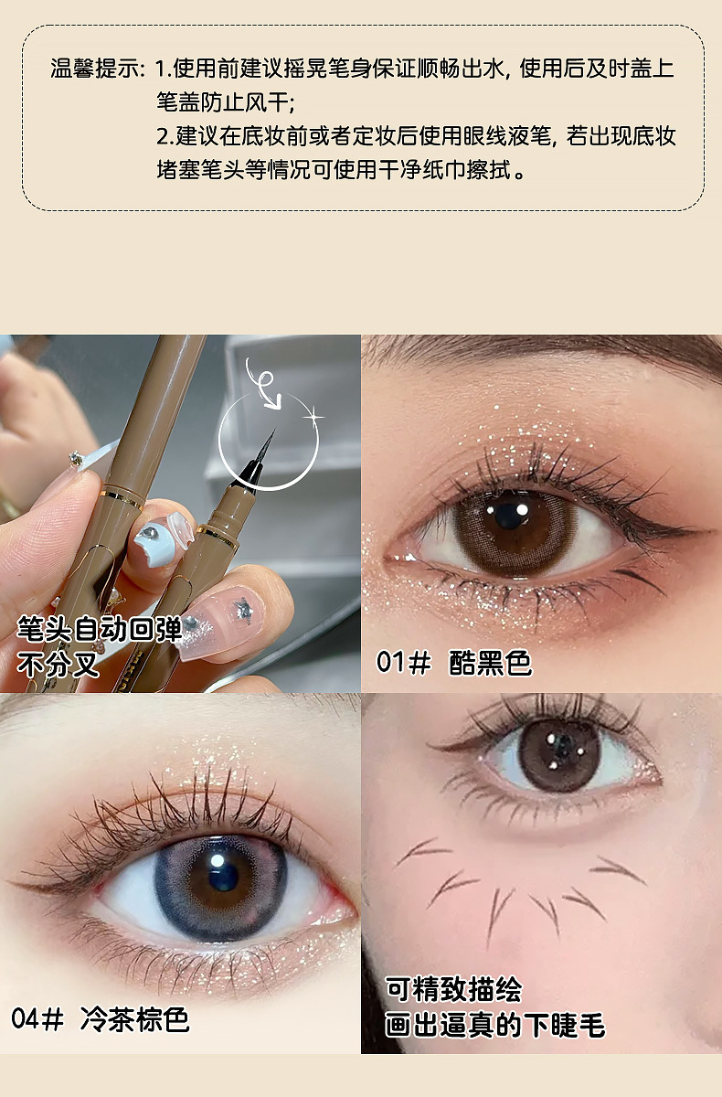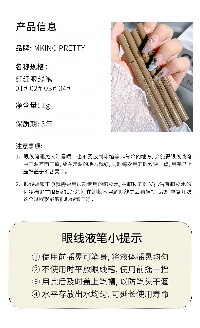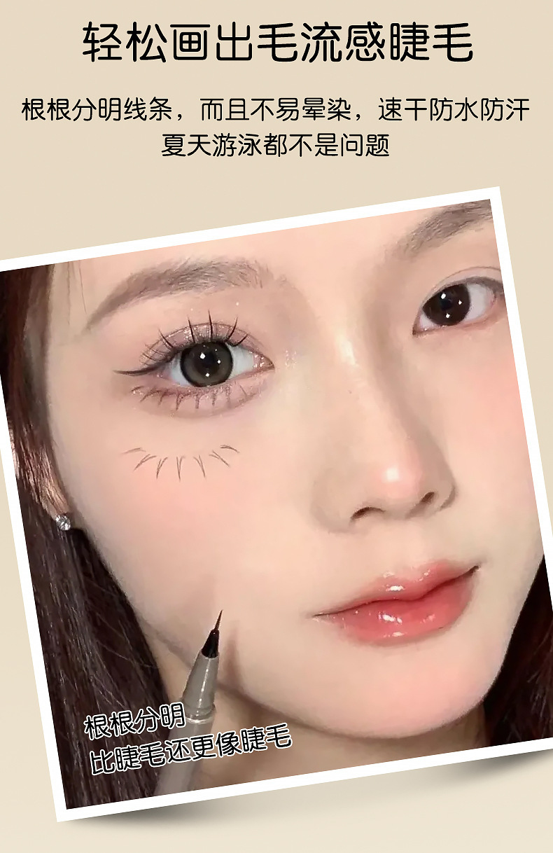 Mking Pretty Slim Eyeliner, Extremely Fine and Distinct Lower Eyelashes, Not Easy to Smudge, Stereo Quick-Drying Students