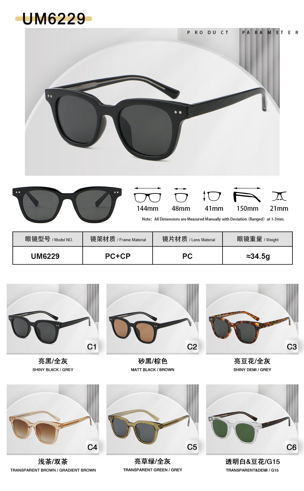 - Color: 1. black frame gray film