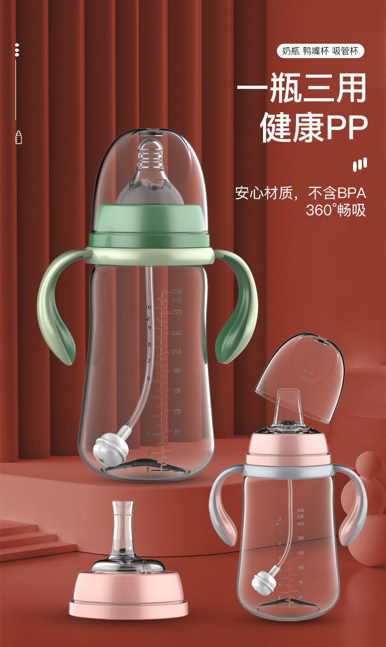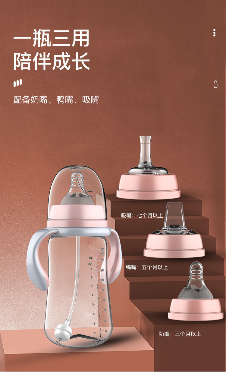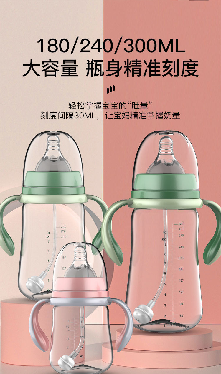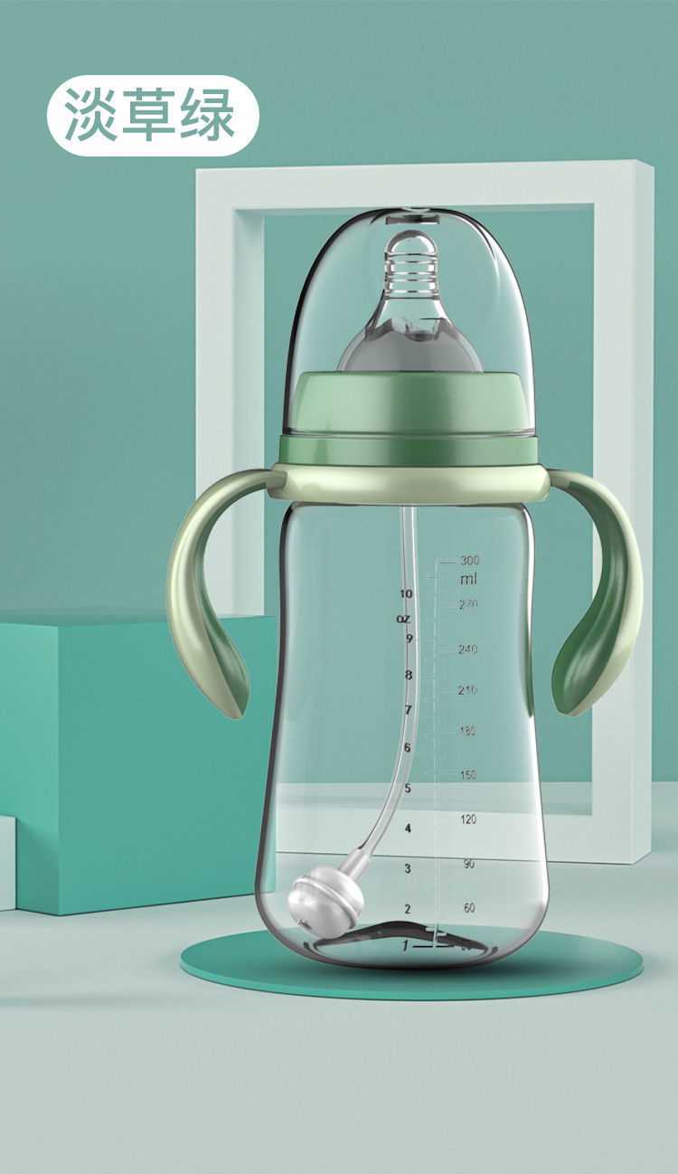 Newborn Baby Bottle Anti-Fall Wide Diameter Baby Supplies Silicone Duckbill Weaning Anti-Flatulence Straw Brush Pp Water Cup