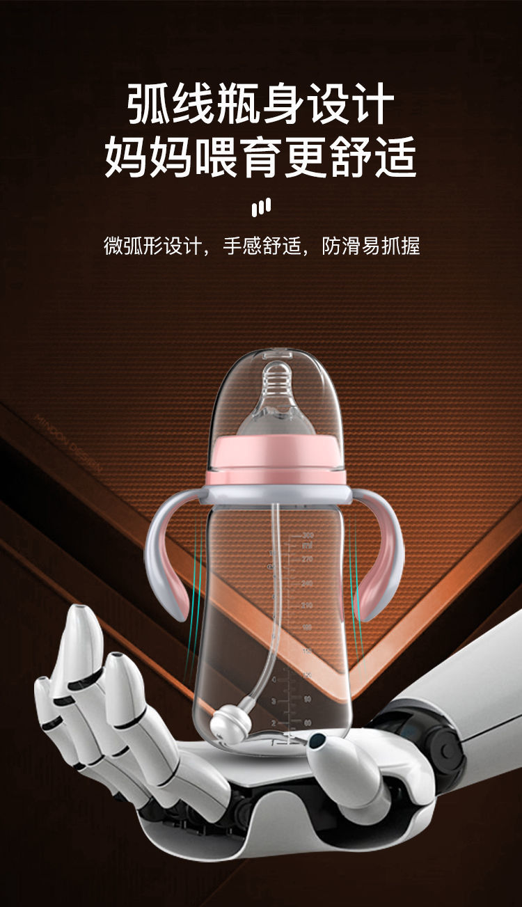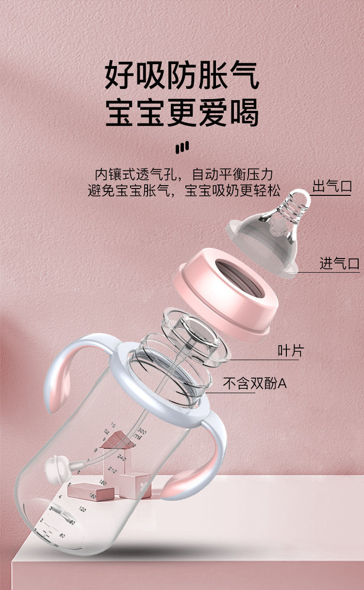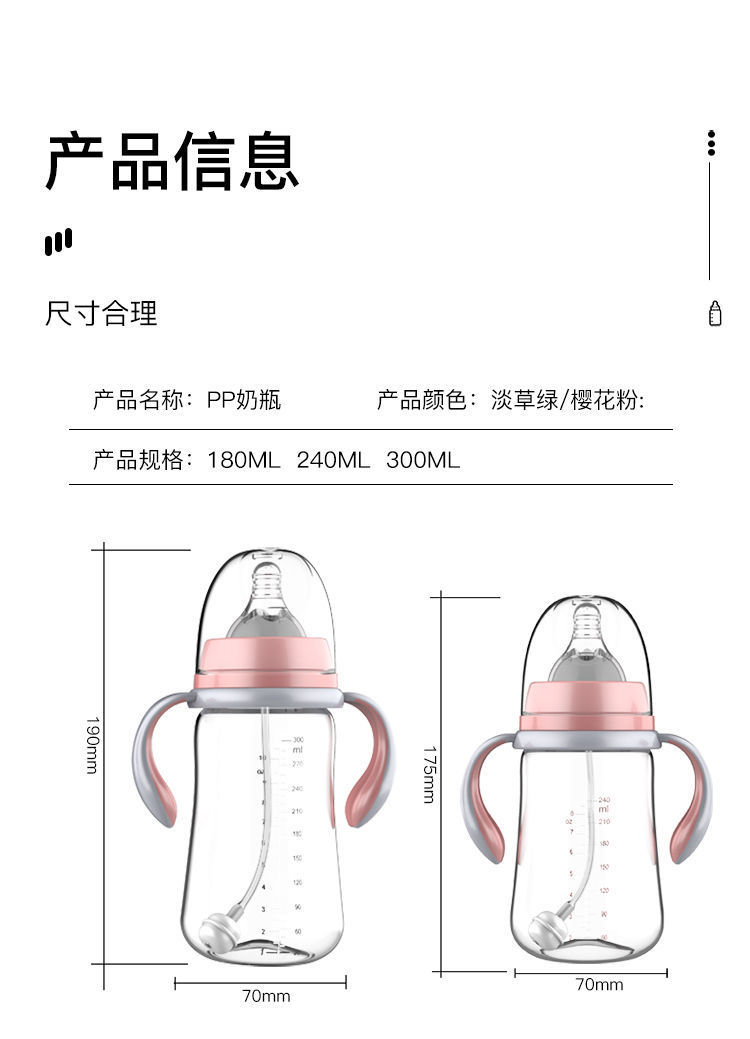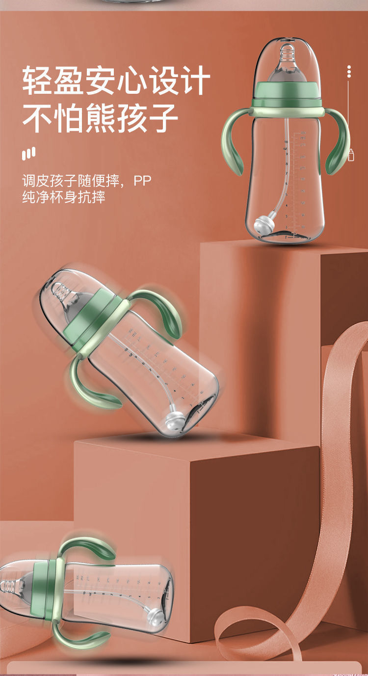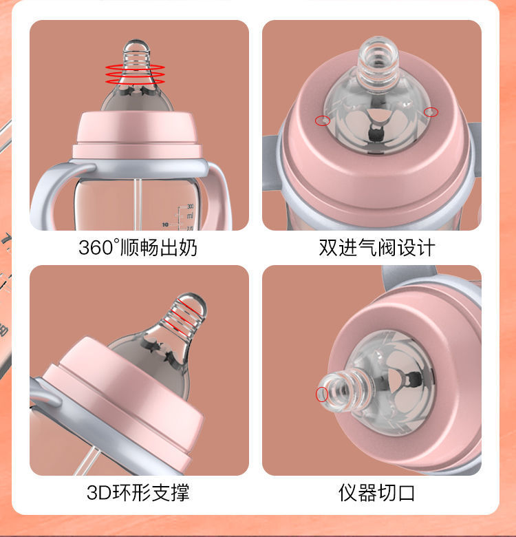 Newborn Baby Bottle Anti-Fall Wide Diameter Baby Supplies Silicone Duckbill Weaning Anti-Flatulence Straw Brush Pp Water Cup