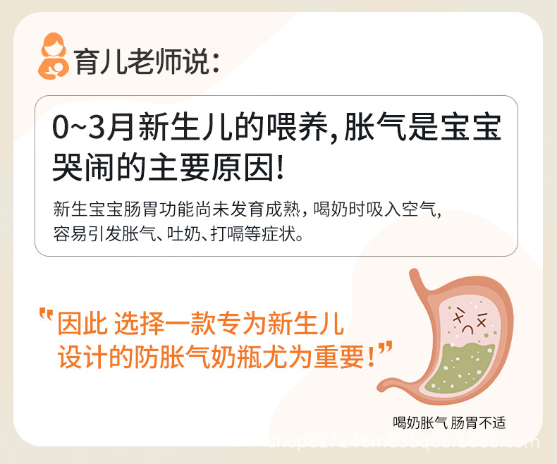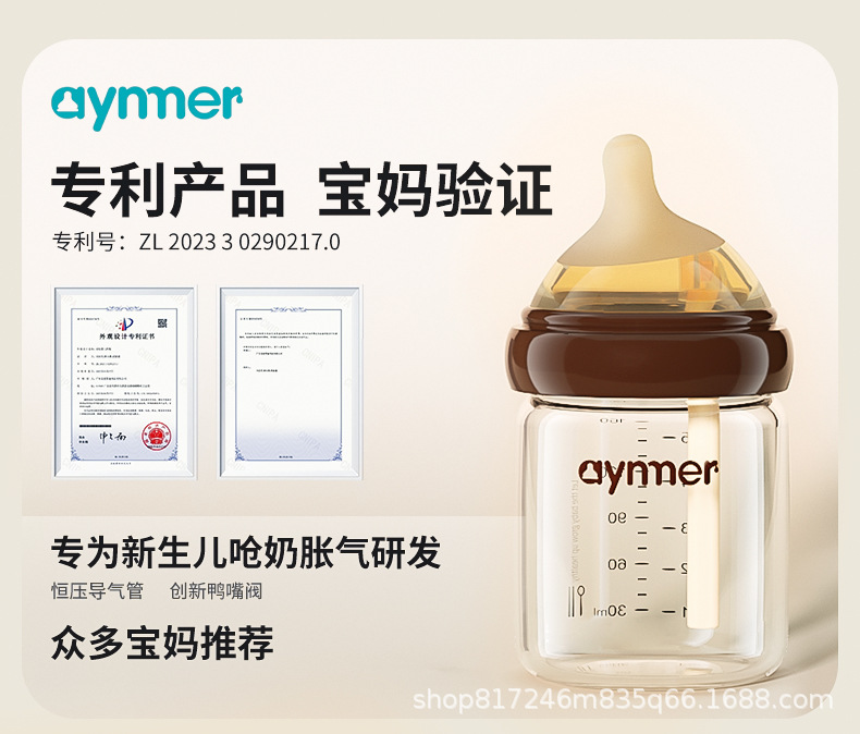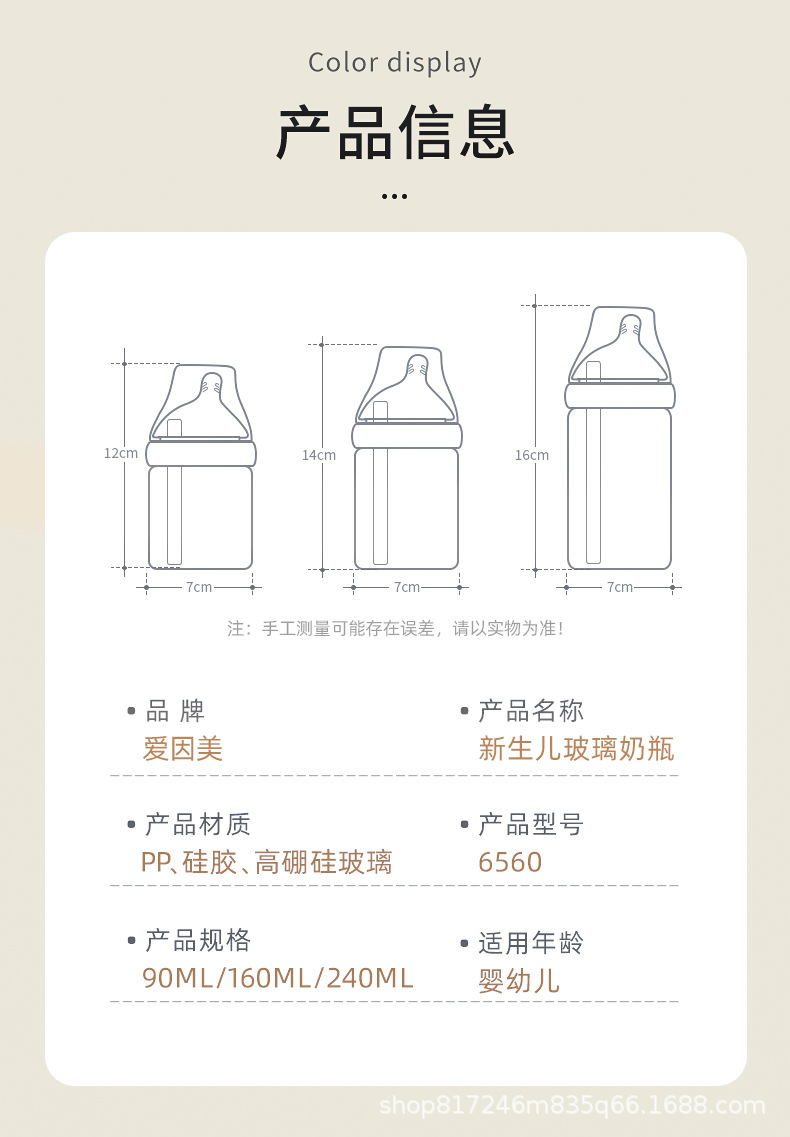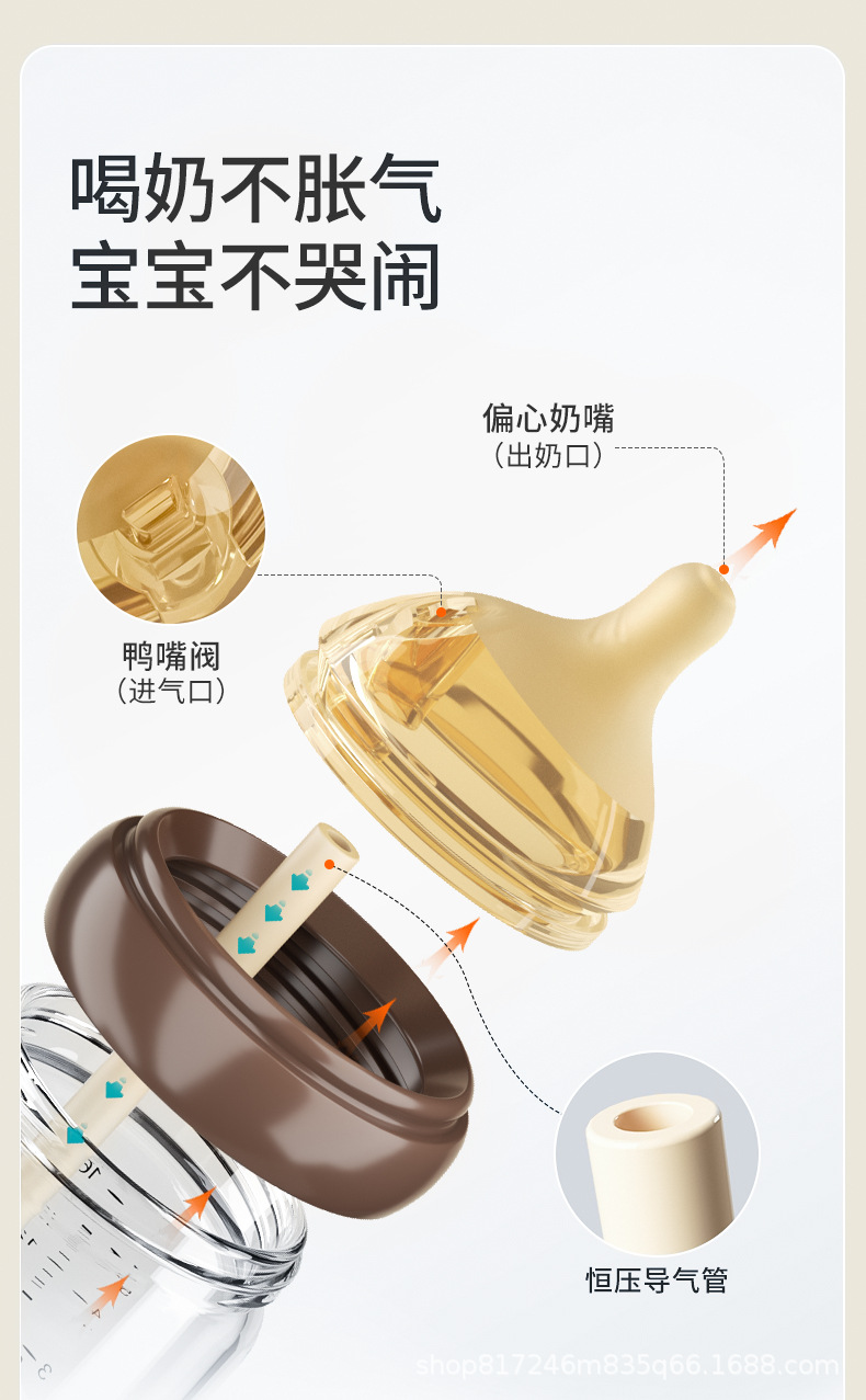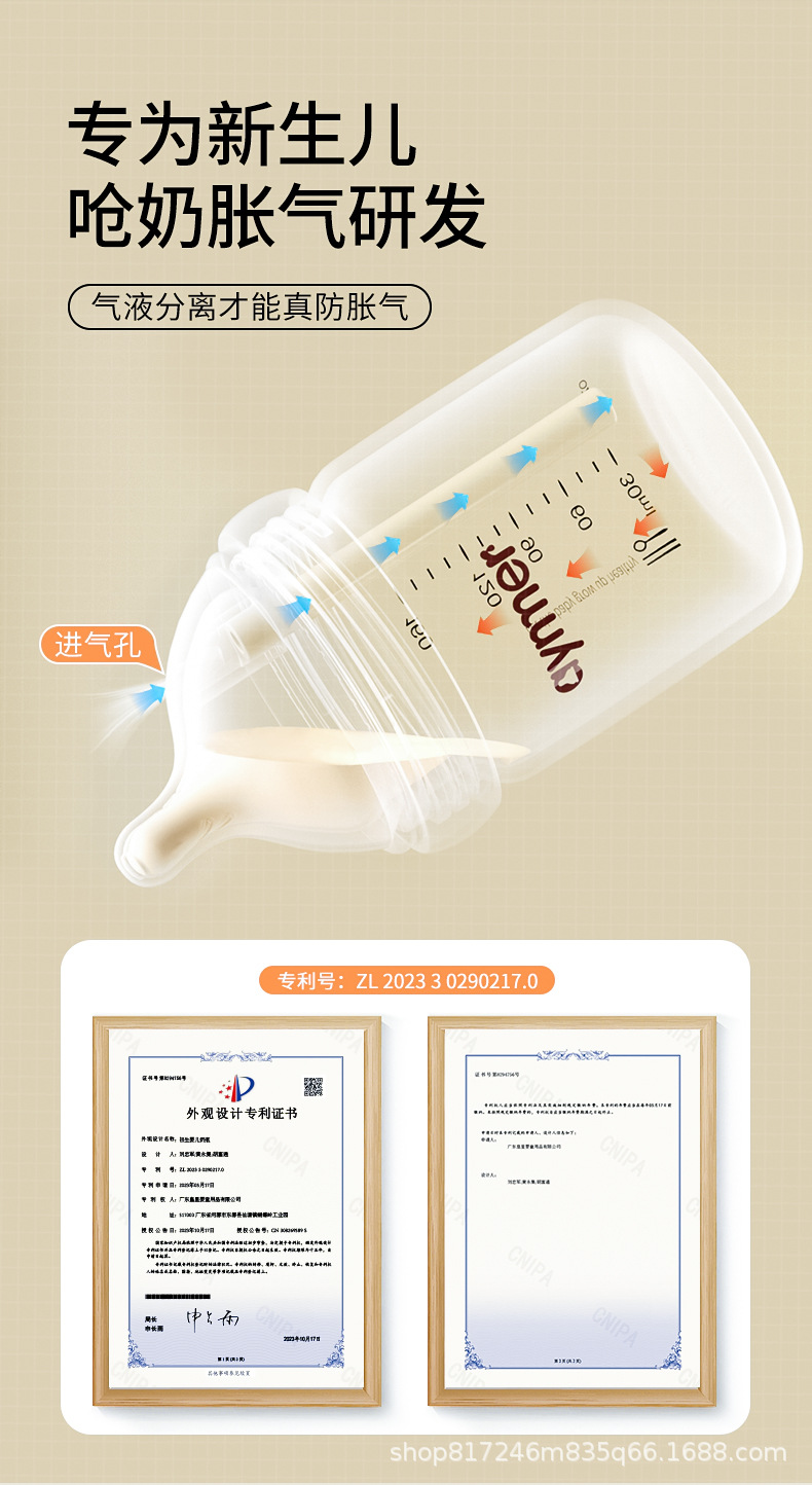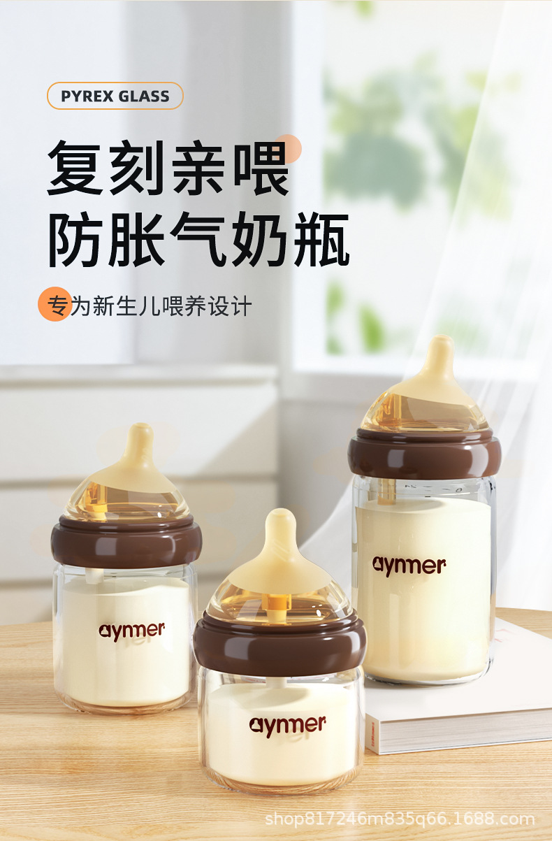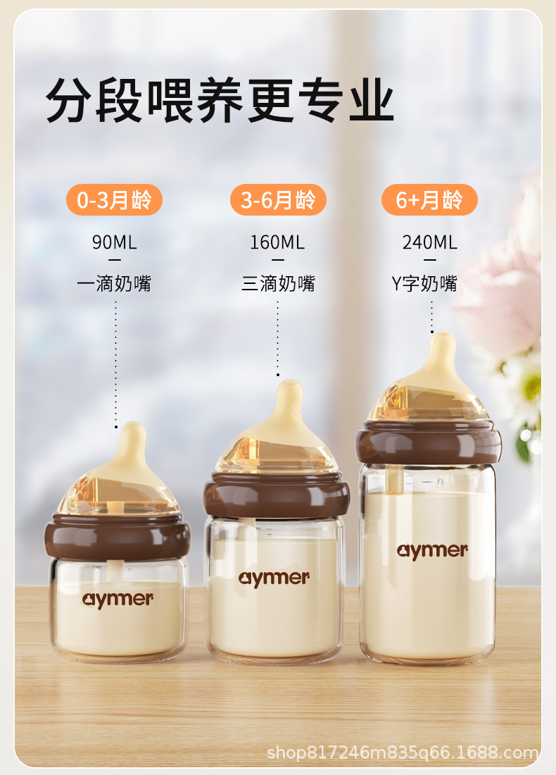 Newborn baby glass bottle wide diameter anti-choking baby anti-flatulence imitation breast milk baby glass bottle
