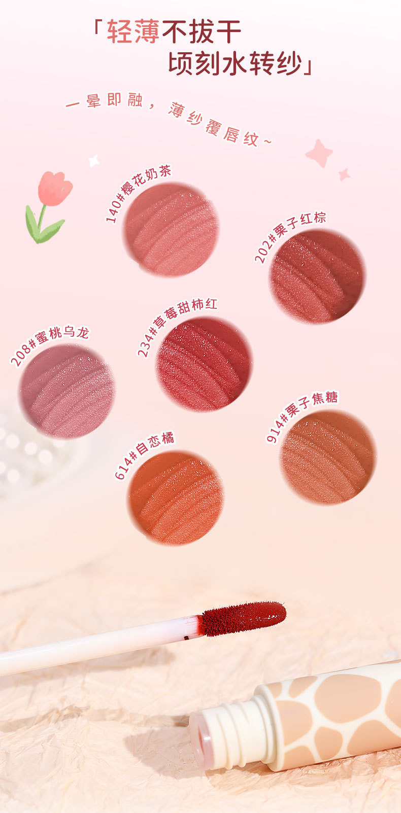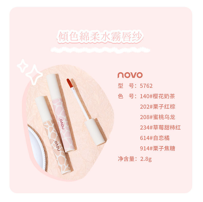 Novo Water Mist Lip Gauze Lip Glaze Matte Matte Waterproof Non-Fading Non-Stick Cup Gentle Daily Whitening Lipstick