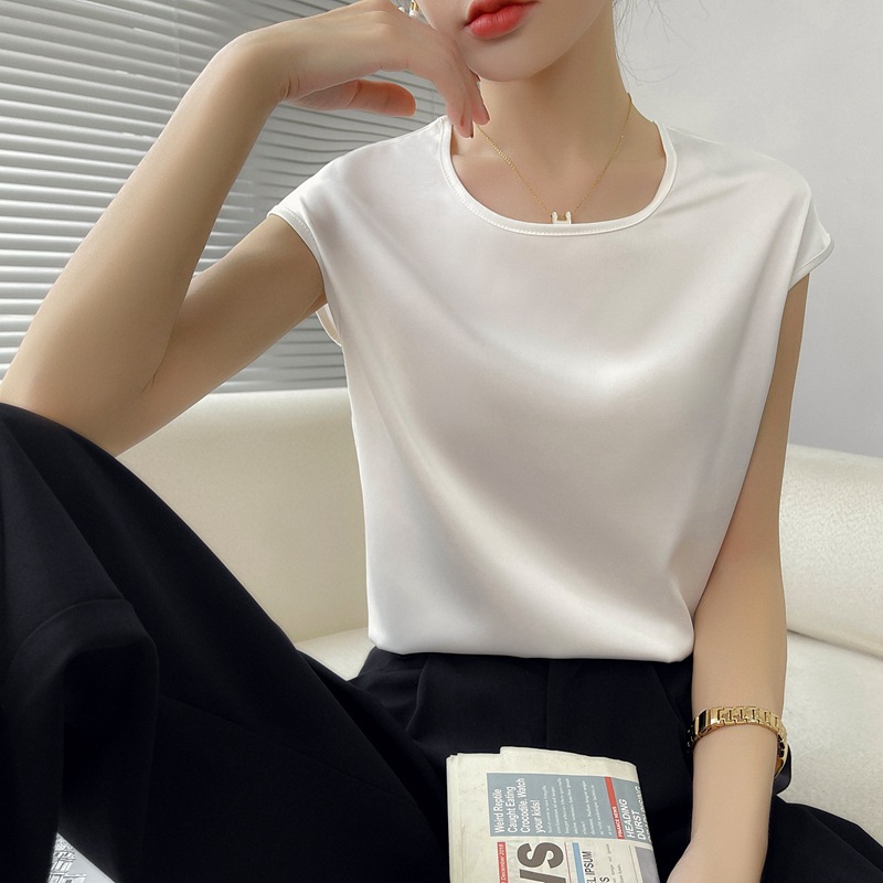 - 丝绸真丝2022春夏季女装新修身圆领短款外穿气质内搭短袖上衣T恤