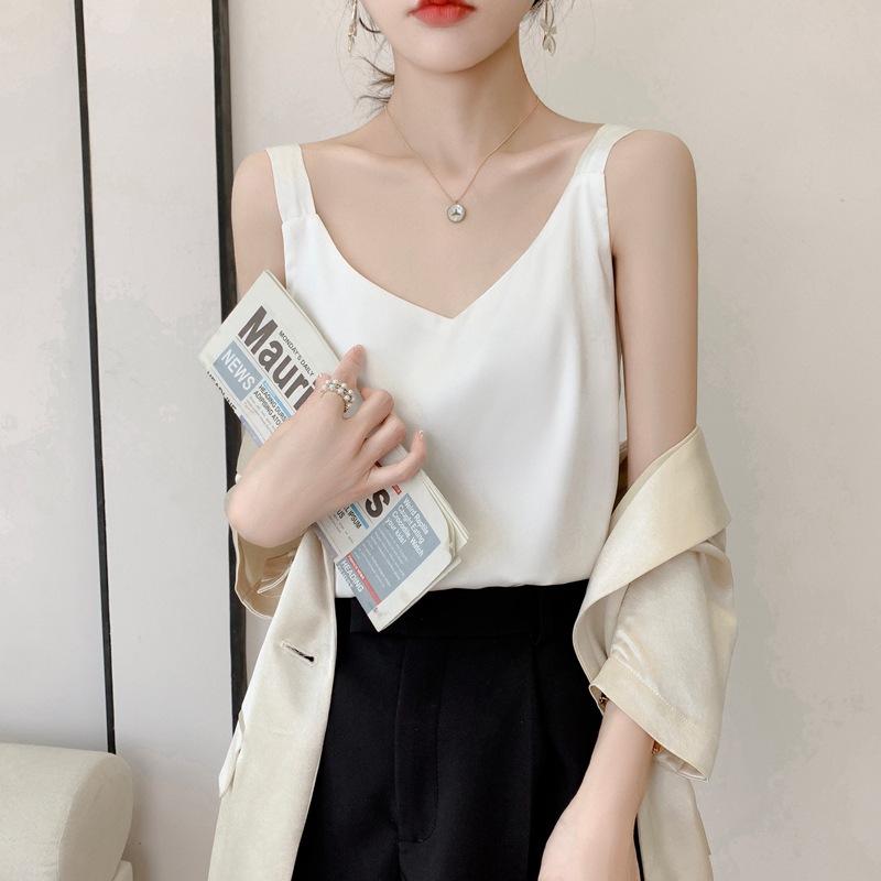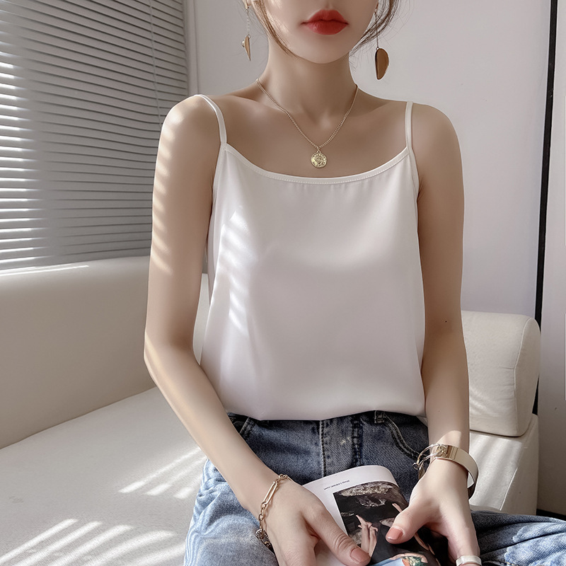 - 丝绸吊带2022夏季女装新修身v字领短款双肩带内搭气质吊带小背心