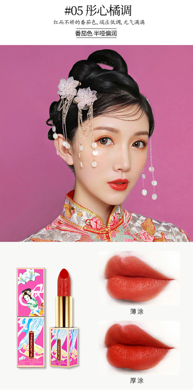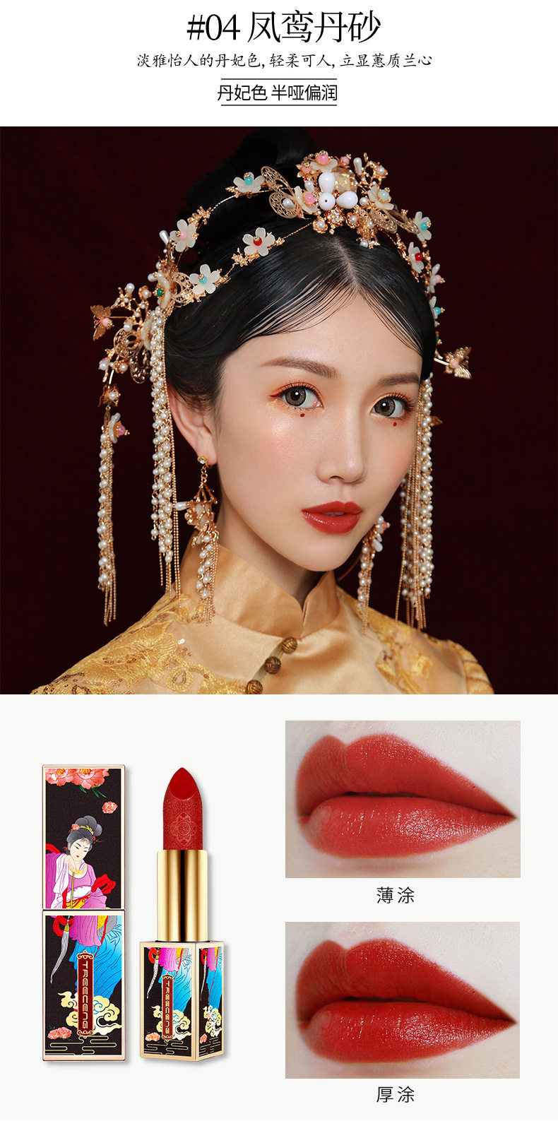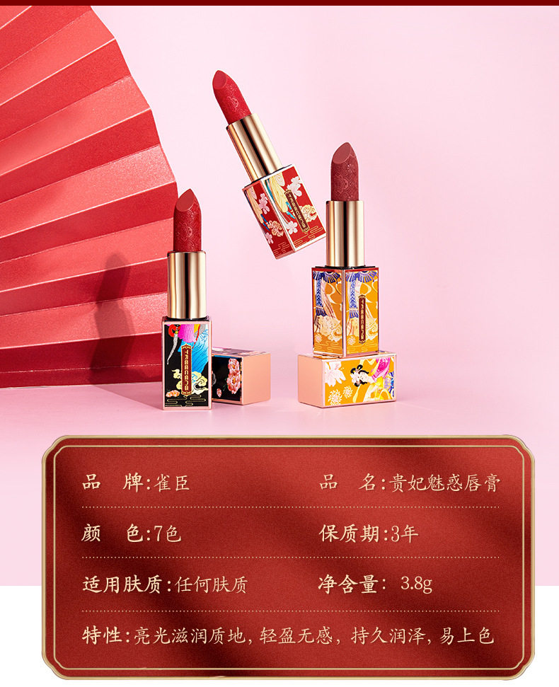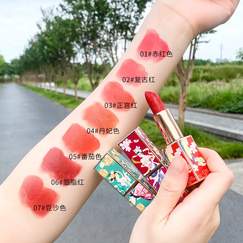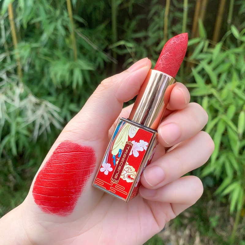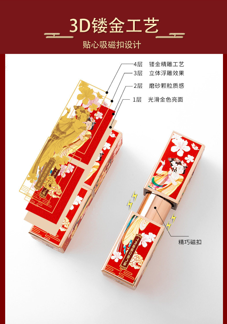 TREECENG Quechen China Forbidden City Wind Imperial Concubine Carved Lipstick Magnetic Buckle Matte Moisturizing Lipstick for Hair