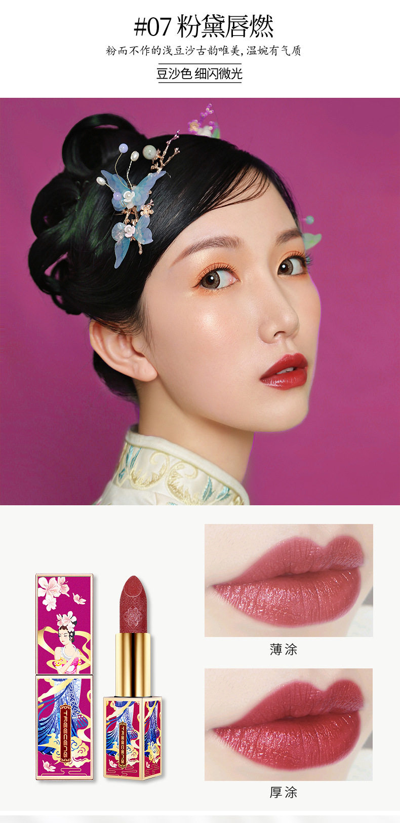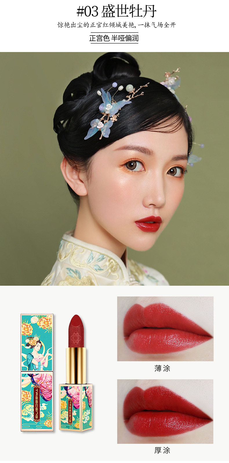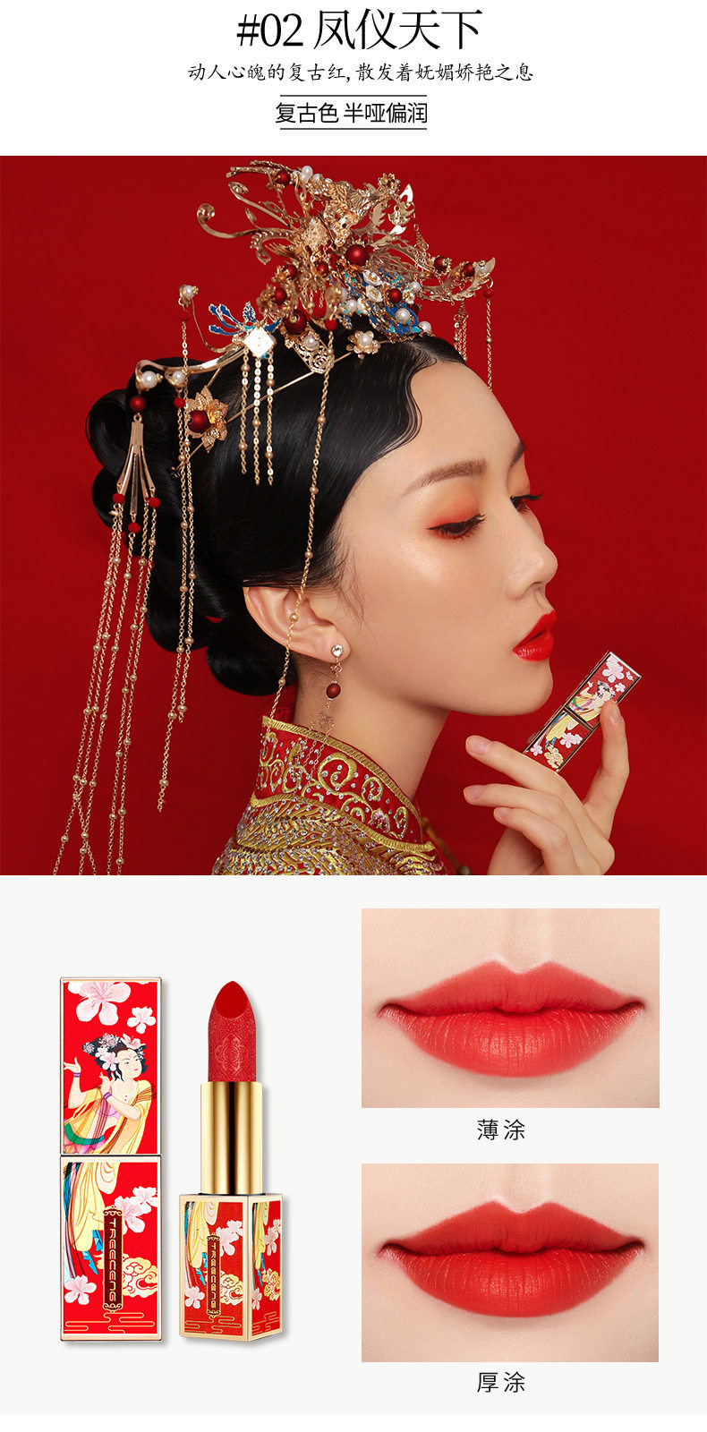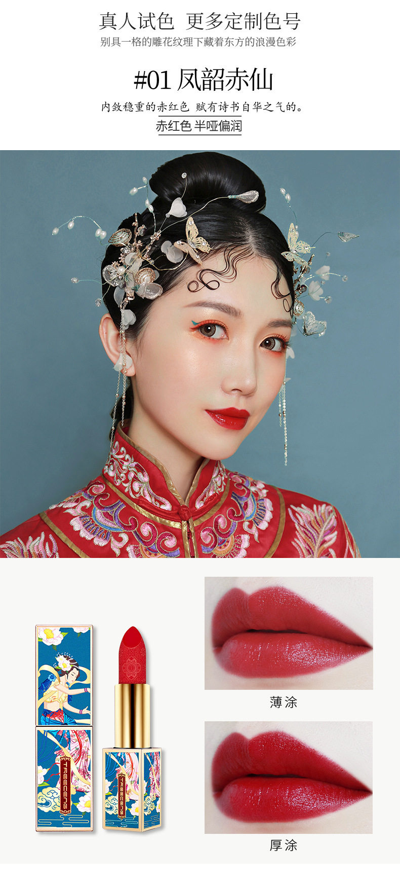 TREECENG Quechen China Forbidden City Wind Imperial Concubine Carved Lipstick Magnetic Buckle Matte Moisturizing Lipstick for Hair