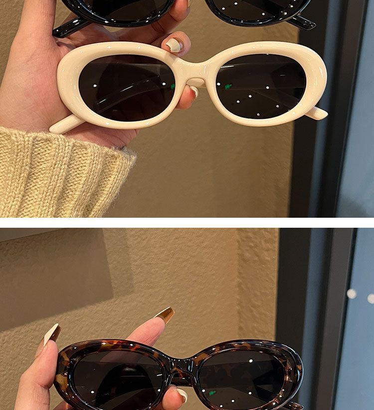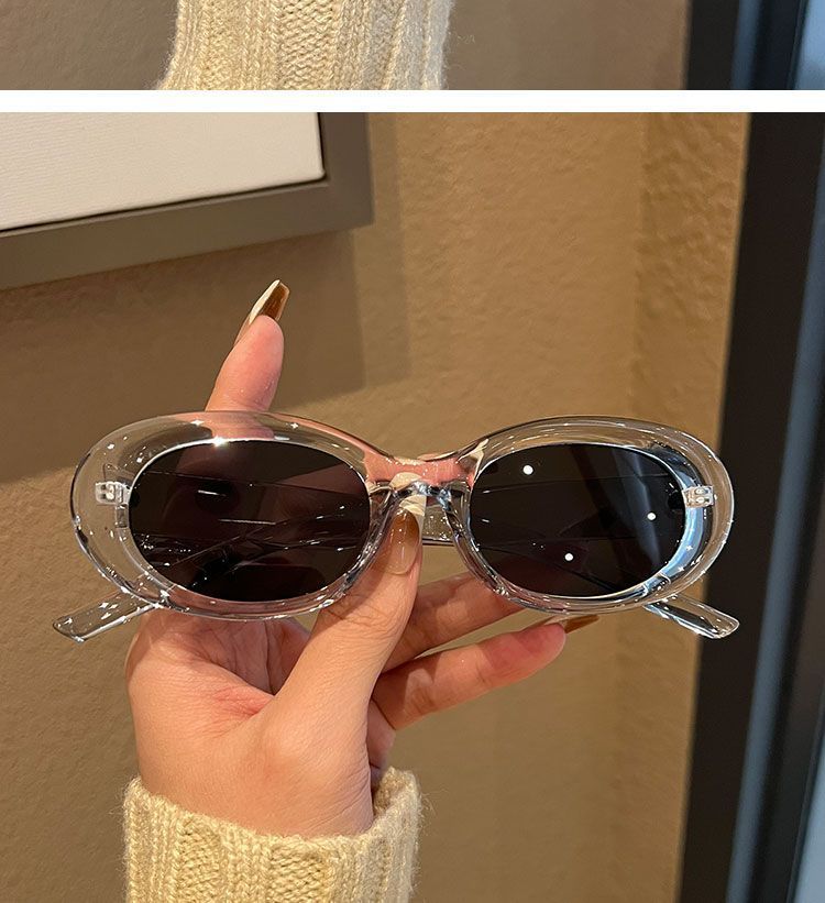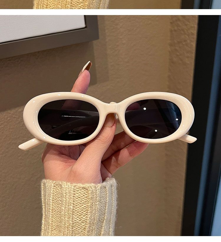 Trendy Oval White Frame Sunglasses European and American Concave Sunglasses