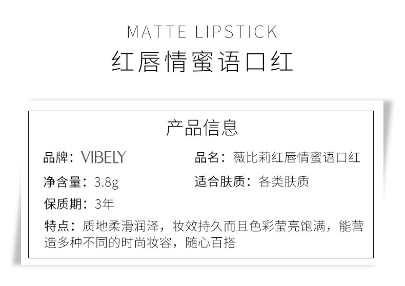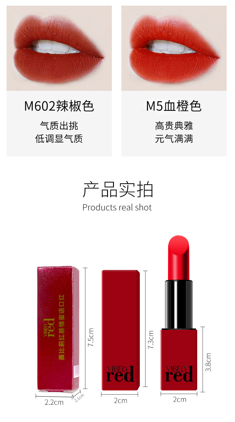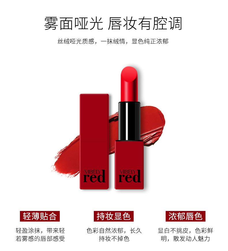 VIBELY big red lips love honey lipstick matte matte Chinese style lipstick lasting easy to color and not easy to decolorize